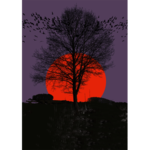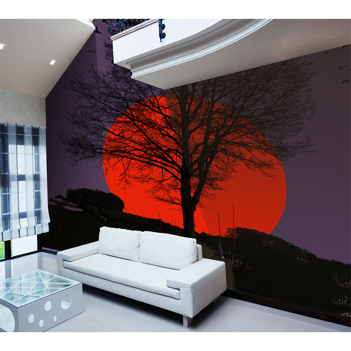 ARBRE ET OISEAUX ROSE SUR ROUGE