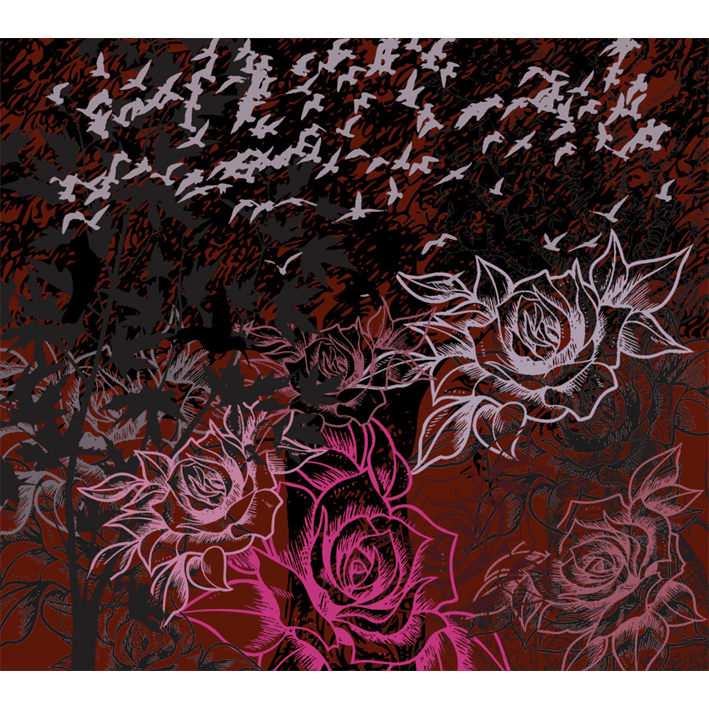ARBRE ET OISEAUX ROSE SUR ROUGE