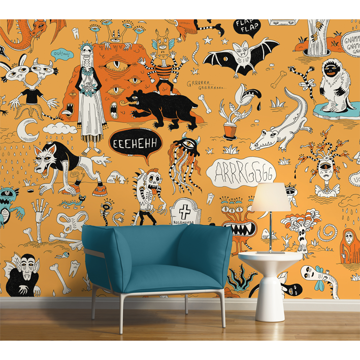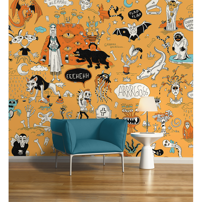 WALLPAPER JUNGLE CARTOON B&W