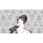 A sober but sophisticated panoramic wallpaper in homage to Mademoiselle. A masterful portrait on a Classic black and white background. Ah, the delicacy of the little pink ribbon around her neck!