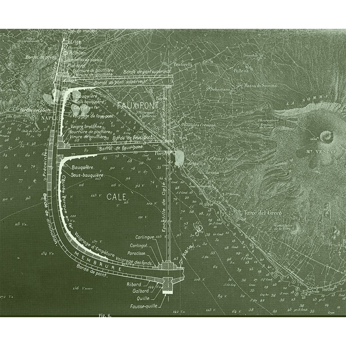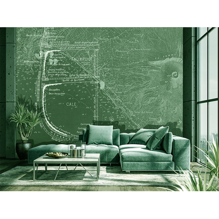 This design features a cross-section of a sailing ship on an antique nautical chart background, bringing a nautical and historic ambiance to your interior. This type of motif can evoke memories of sea voyages and add a touch of elegance to a room. If you need advice on how to incorporate it into your decor, or ideas on how to match it with other elements, don't hesitate to ask!