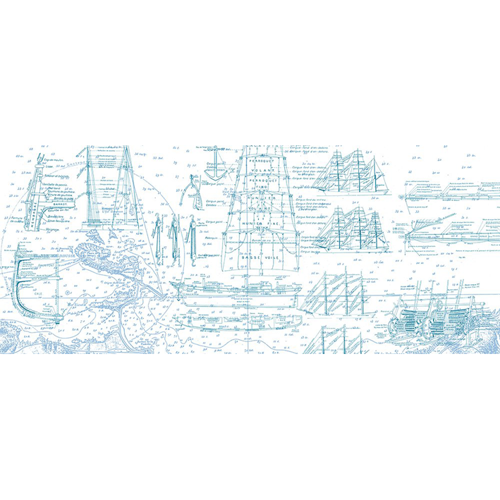ON THE JIB, BLUE ON AN ECRU BACKGROUND