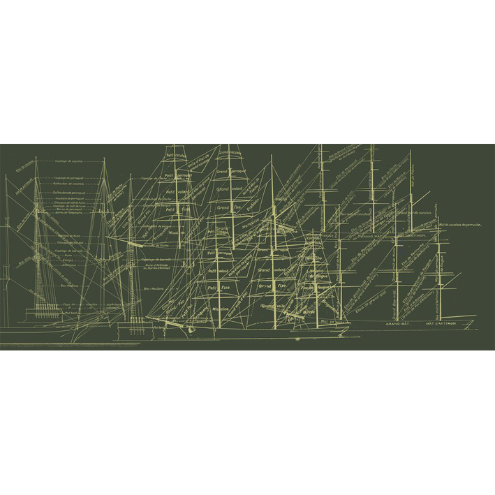 Wallpaper presenting the vocabulary and terms related to spars on Belle Époque sailing ships. Thanks to their precise designations, these elements enabled sailors to communicate effectively in the complex management of the sails and maneuvering of tall ships.