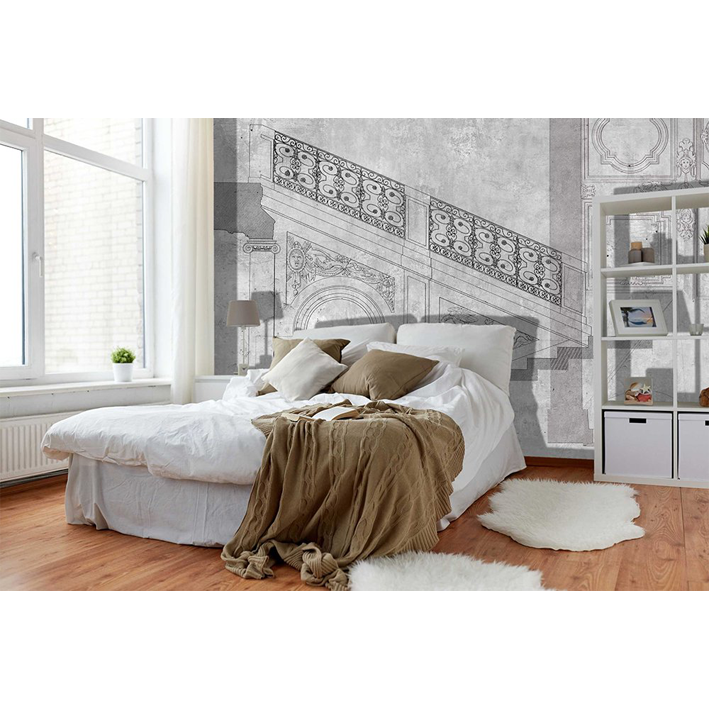 This wallpaper depicting a Baroque staircase on a grey background offers a spectacular blend of luxury and elegance, while creating a dramatic and majestic atmosphere. It transforms an ordinary space into a ceremonial hall, evoking the grandeur of Baroque architecture while offering a dynamic and fascinating visual effect.