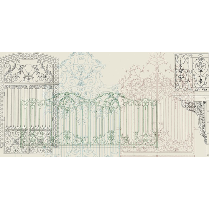 This wallpaper featuring ironwork designs adds a spectacular decorative dimension to any space. With its delicate motifs and technical details, it evokes the beauty of metalwork, while creating an elegant, sophisticated and timeless ambience. It combines art, architecture and design to create a refined decor full of character.