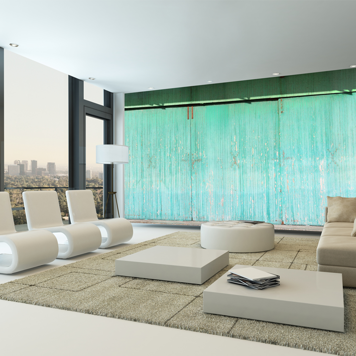 It is only the weather, the sun, the passing of the seasons, the marine climate to give this celadon blue wooden gate this exceptional patina and these magnificent cracks. In the end: an astonishing marine panoramic wallpaper, salty and luminous.