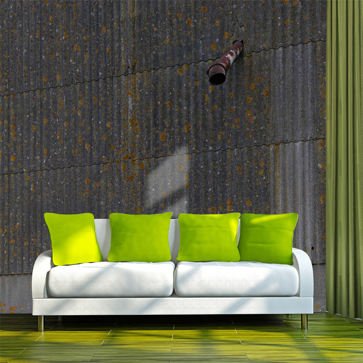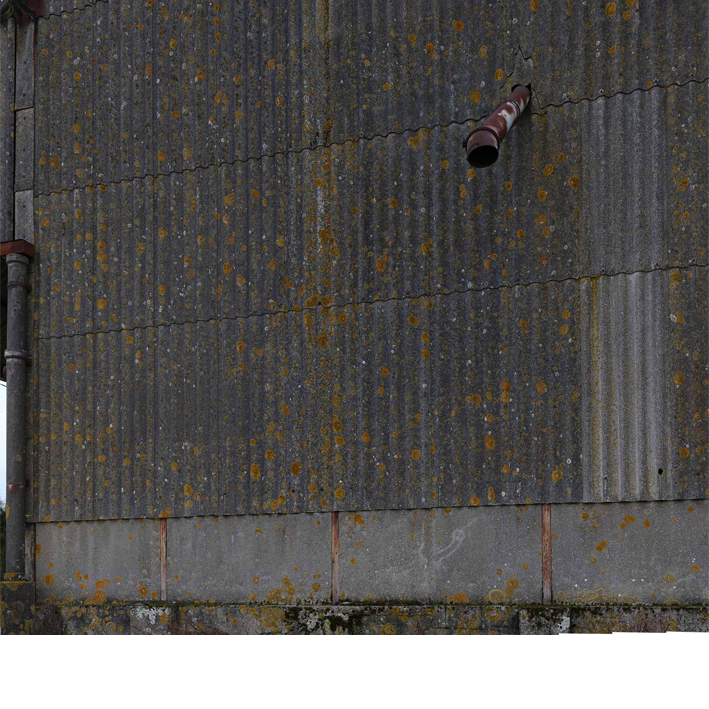Corrugated metal exposed to all types of weather. Thousands of small touches of yellow and grey ochre lichen, on this anthracite flat, give lightness and a pictorial side to this simple sheet metal. The result is an ultra aesthetic panoramic wallpaper.