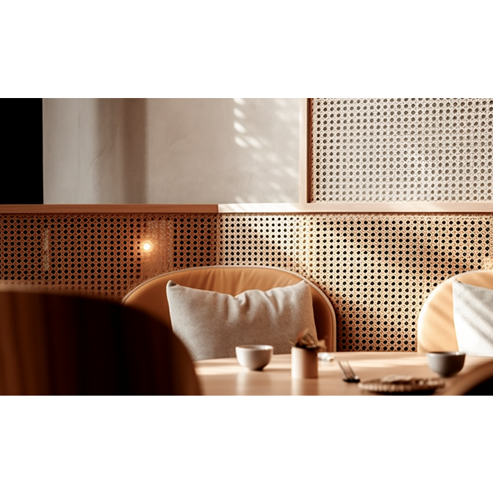 Made from 100% natural raffia fibers, this fabric showcases the harmonious blend of nature’s elements. Its earthy tones and intricate texture evoke a sense of tranquility and connection to the natural world.