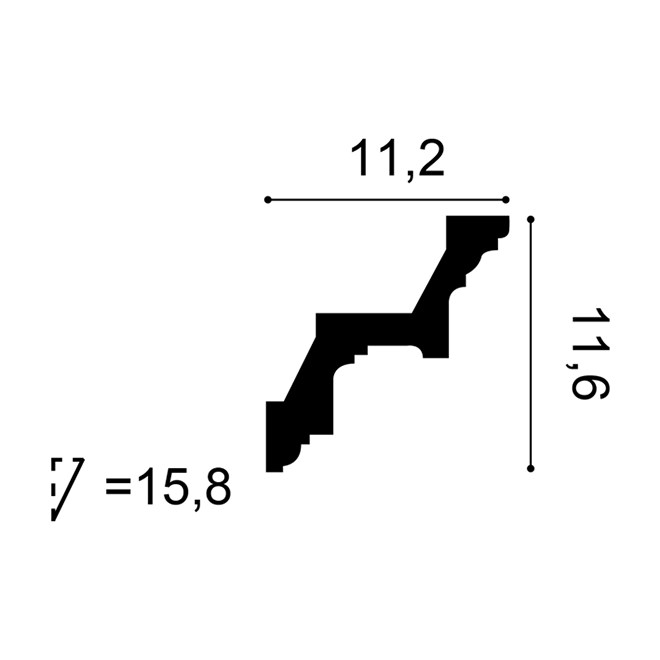 Flexible version of the C211. This stately crenellated cornice moulding gives any interior a little extra something. Thanks to its Flex technology, curved walls and surfaces are no problem. Be sure to consider the C422 as well or combine with the C305 for even more magnificence. Installation remark: It is necessary to screw this profile on the wall. Flex Radius: R min = 250 cm