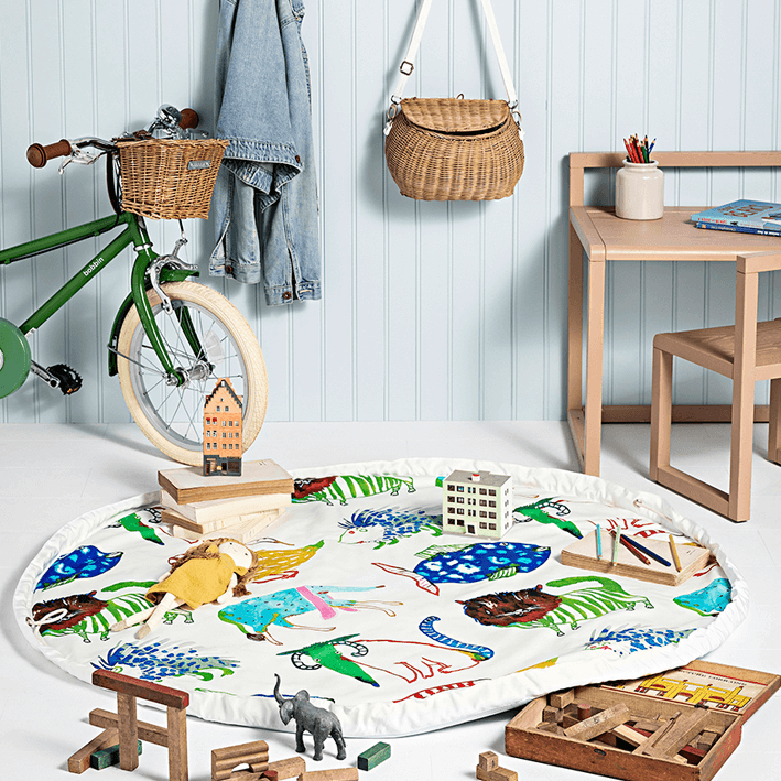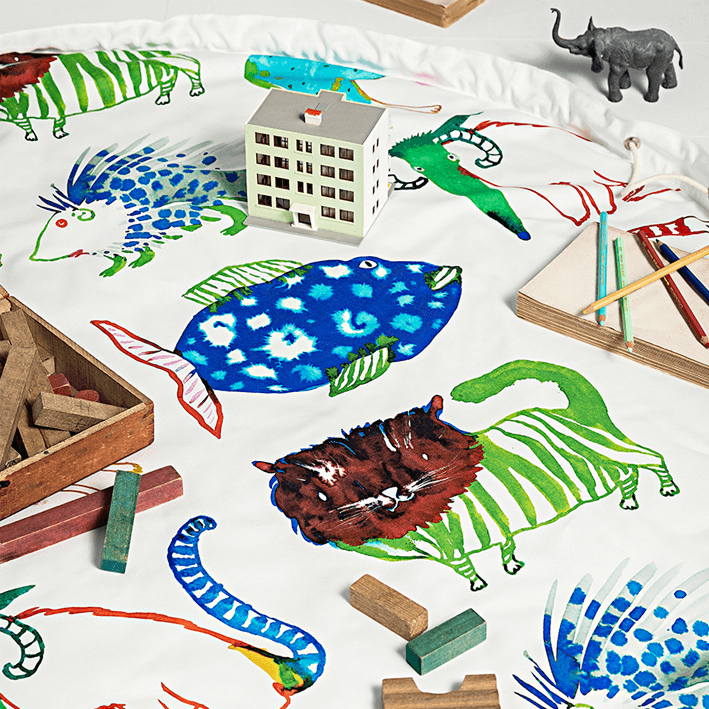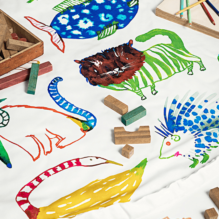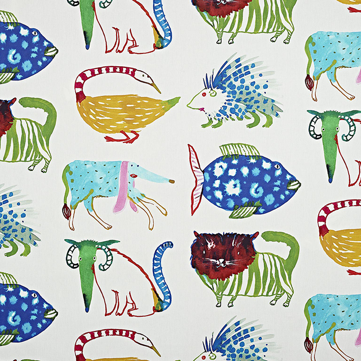 It's a day of celebration! What did you dress up as lion? As a hamster of course ! And you cow? As a greyhound of course ! The animals promise to have fun! Drawing made with ink and printed on cotton. Coordinated with wallpaper FP827 MARDI GRAS. 10% of the profits are donated to the Fondation de France, to support the project Tous unis contre le virus (All united against the virus) via an action carried out to prevent school dropouts.