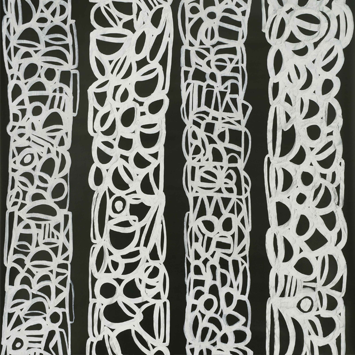Totem is a sort of manifesto where the pictorial language of Christian Astuguevieille takes on full meaning. The artist developed what he calls an “imaginary writing” and has continued to make it evolve. He mixes figurative elements representing symbols of civilization—objects, amphorae, shields—with a more abstract graphic style. He extends this writing on rolls of tracing paper in a vertical composition using India ink and a thick brush.