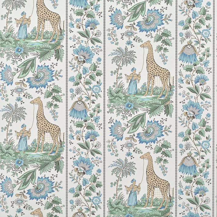ISMAELIA는 프랑스 Mulhouse에 위치한 Musée de l'impression sur Etoffes에 소장된 1830년 경의 프린트 캔버스 ‘La girafe’를 재현합니다. 1826년 이집트의 총독 Mehemet Ali가 유럽의 Charles 10세, George 4세, Francis 1세에게 선사한 선물을 기념하는 이미지입니다. Charles 10세를 위해 보낸 기린은 Marseille에 도착한 후Paris의 식물원에 이르기 위해 프랑스를 가로질러 여행했습니다. 이 놀라운 이벤트가 많은 사람들에게 오랫동안 깊은 인상을 남기면서 유럽의 장식 예술에 ‘기린 열풍’을 불러일으켰습니다. 전통적인 로터리 스크린 프린팅으로 완성되었습니다.