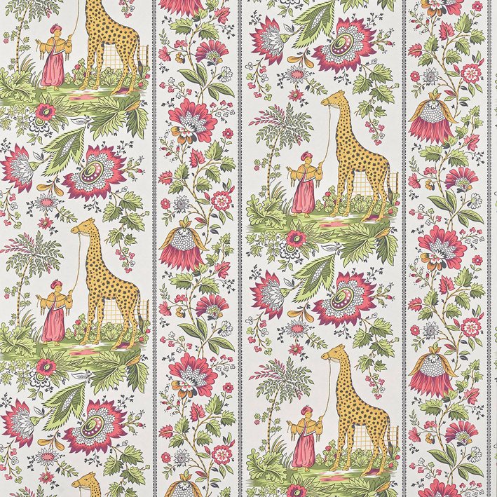 ISMAELIA reproduces a canvas printed around 1830, entitled "La girafe", kept at the Musée de l'impression sur Etoffes in Mulhouse. The animal intended for Charles X, unloaded in Marseille in 1826, crossed France to reach the menagerie of plants in Paris. This extraordinary event gave birth to the "giraffomania" in the decorative arts.