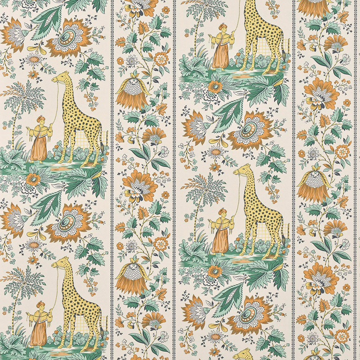 ISMAELIA는 프랑스 Mulhouse에 위치한 Musée de l'impression sur Etoffes에 소장된 1830년 경의 프린트 캔버스 ‘La girafe’를 재현합니다. 1826년 이집트의 총독 Mehemet Ali가 유럽의 Charles 10세, George 4세, Francis 1세에게 선사한 선물을 기념하는 이미지입니다. Charles 10세를 위해 보낸 기린은 Marseille에 도착한 후Paris의 식물원에 이르기 위해 프랑스를 가로질러 여행했습니다. 이 놀라운 이벤트가 많은 사람들에게 오랫동안 깊은 인상을 남기면서 유럽의 장식 예술에 ‘기린 열풍’을 불러일으켰습니다. 전통적인 로터리 스크린 프린팅으로 완성되었습니다.