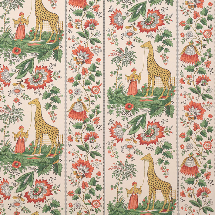 ISMAELIA reproduces a canvas printed around 1830, entitled "La girafe", kept at the Musée de l'impression sur Etoffes in Mulhouse. The animal intended for Charles X, unloaded in Marseille in 1826, crossed France to reach the menagerie of plants in Paris. This extraordinary event gave birth to the "giraffomania" in the decorative arts.
