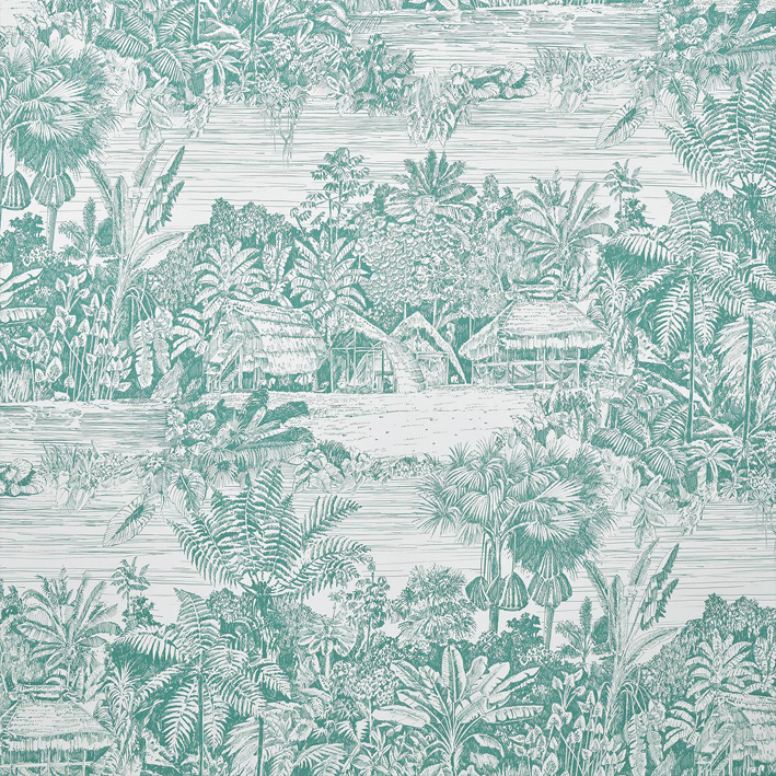 As if sketched on the spot with a pencil, this drawing takes us along a river in the middle of the rainforest, in this magical country called Belize. Printed on wide width glazed non-woven backing.