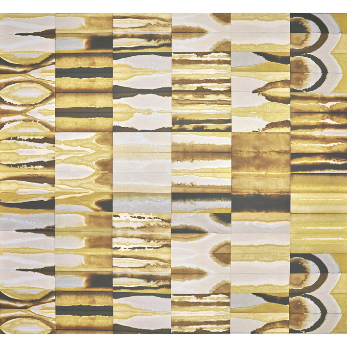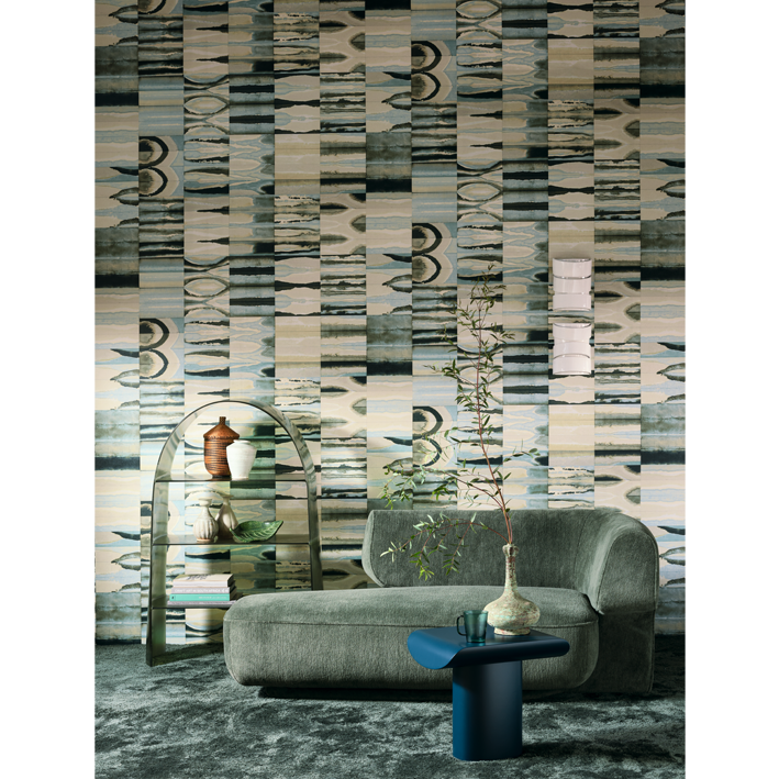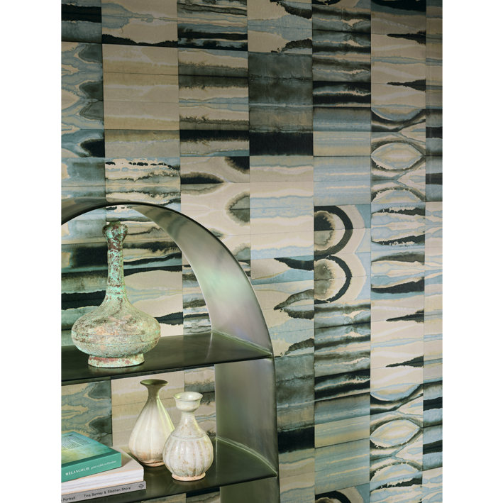This wallpaper, printed on a medium similar to art paper, faithfully reinterprets a contemporary work by Adrien Testard. The artist's work is rooted in the art of folding. He plays with the propagation of ink on folded Japanese paper, generating multiple landscape textures and color variations. Once unfolded, the work is an ode to the illusions and mirages seen at the gates of a desert, where the waters disappear. Available in coordinated fabric under reference F3964 AGAFAY.