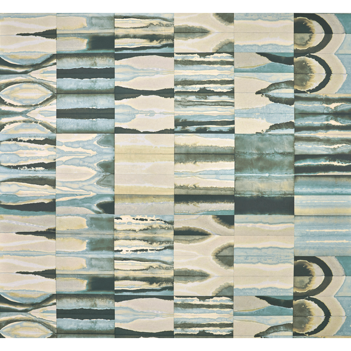This wallpaper, printed on a medium similar to art paper, faithfully reinterprets a contemporary work by Adrien Testard. The artist's work is rooted in the art of folding. He plays with the propagation of ink on folded Japanese paper, generating multiple landscape textures and color variations. Once unfolded, the work is an ode to the illusions and mirages seen at the gates of a desert, where the waters disappear. Available in coordinated fabric under reference F3964 AGAFAY.