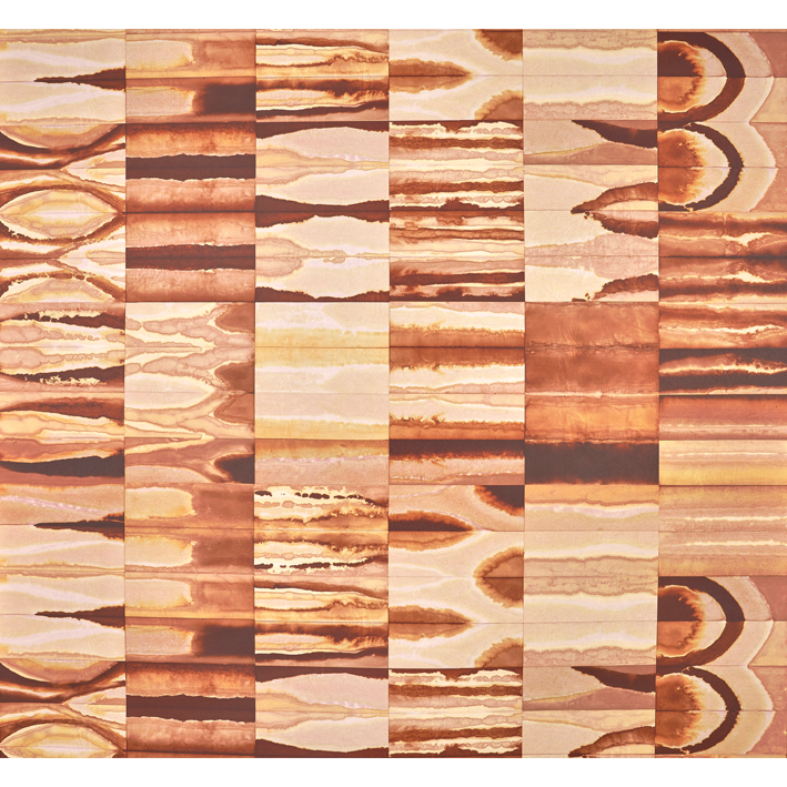 This wallpaper, printed on a medium similar to art paper, faithfully reinterprets a contemporary work by Adrien Testard. The artist's work is rooted in the art of folding. He plays with the propagation of ink on folded Japanese paper, generating multiple landscape textures and color variations. Once unfolded, the work is an ode to the illusions and mirages seen at the gates of a desert, where the waters disappear. Available in coordinated fabric under reference F3964 AGAFAY.