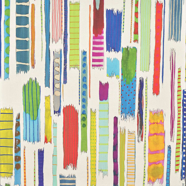 Like a lucky charm or a gri-gri, the colorful spots come together in a rhythmic and joyful composition. Embossed vinyl wallpaper with a linen look on a non-woven backing.