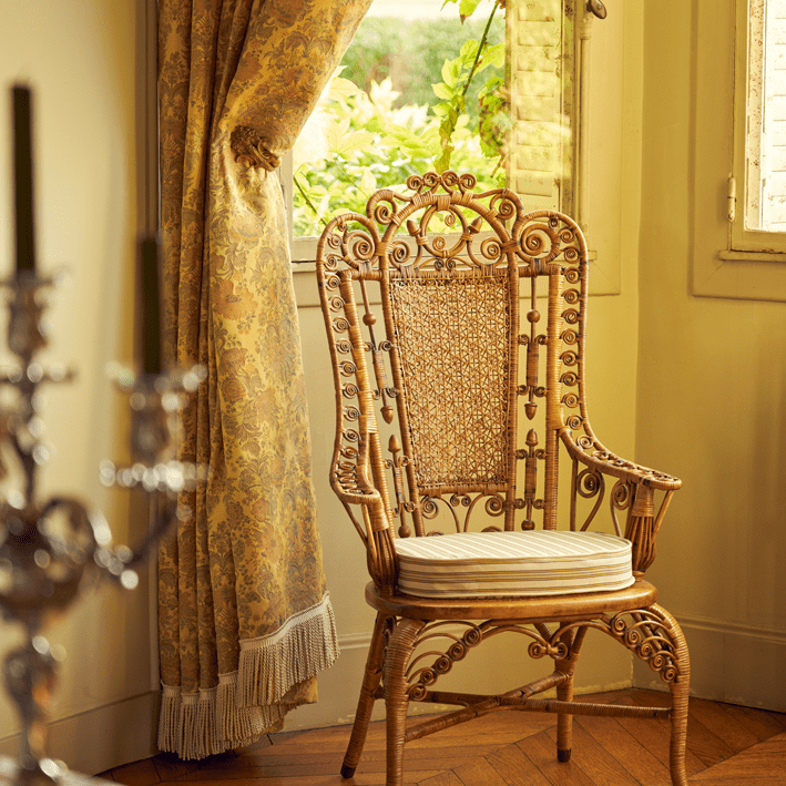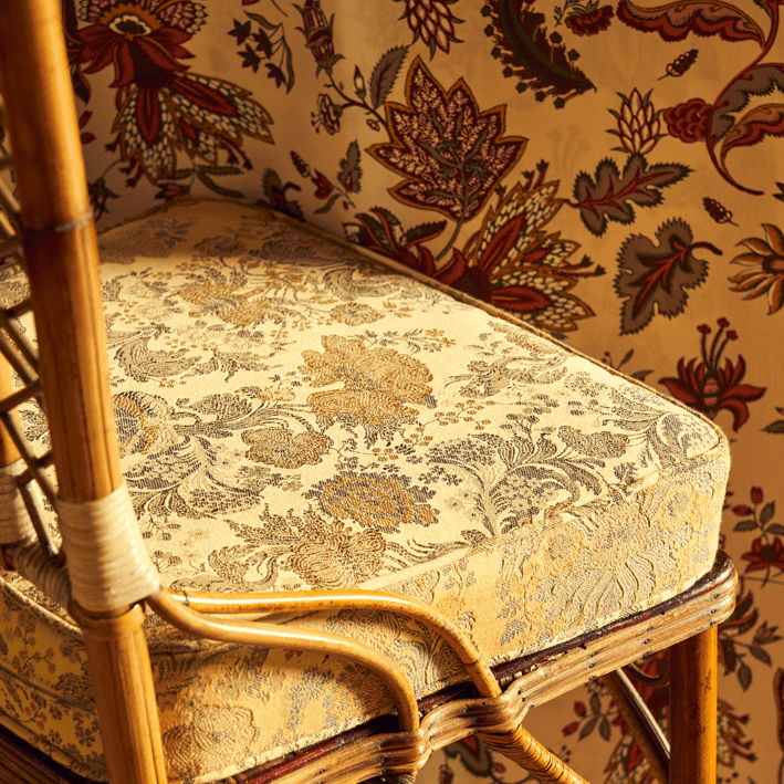 Taken from a Quenin floral archive, the FÉLICITÉ fabric has been reworked in matt jacquard with an embroidered effect to give structure to the design. Made mainly from cotton and linen in our Panissières manufacture (EPV), it is available in six colours. Itsexcellent abrasion resistance makes it ideal for heavy domestic upholstery.
