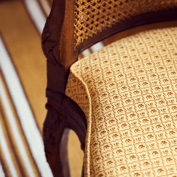 From a Quenin archive and with its adorable little flowers, MYOSOTIS represents the idea of the Belle Époque collection: to modernise classics with bold colours and subtle shine. Made mainly from cotton and linen, this fabric is woven in our Panissières manufacture (EPV).