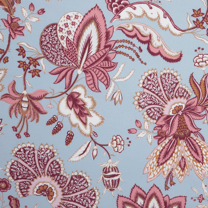 The ÉGLANTINE fabric is inspired by a Quenin archive, in the spirit of a floral indienne. Redrawn to retain the hand-printed effect of the archive, with all the irregularities of the design line, this Indian is woven and printed in France on a 100% cotton canvas.