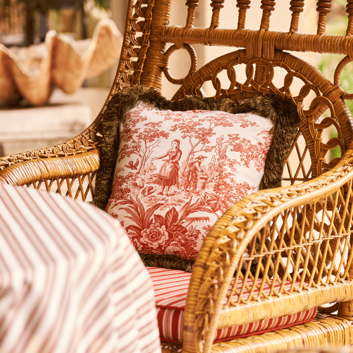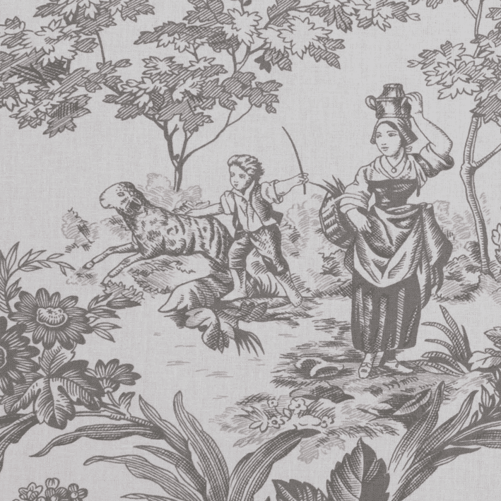 Inspired by a 19th century toile de Jouy archive featuring a scene of pastoral life, our toile de Jouy BELLE SAISON is printed on a 100% cotton canvas in France. BELLE SAISON is available in 6 colours, including lime tree and terracotta, rarely used for toiles de Jouy.