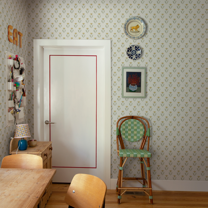 This design is part of the collection inspired by Carl and Karin Larsson, an iconic and beloved Swedish design family active in the 19th century. The design duo still inspires the whole world with their artistry, their home, and their way of living. This hand-painted design adds beauty to your home. Maskrosen is a natural and simple design yet a wallpaper design that communicates a cool and stylish attribute and adds beauty to your home. The stylized hand-painted dandelion wallpaper design is a symbol of the Karin & Carl Larsson family. They were the great influencers of their time. This flower is overlooked by so many but was uplifted by Carl as a symbol for the family’s fighting spirit and stubbornness. If you visit their home, Lilla Hyttnäs in Dalarna, don’t forget to look at the very top of the wall in Carl’s studio, where you can find stylized hand-painted dandelions. Our wallpaper version of dandelions also comes in pink.