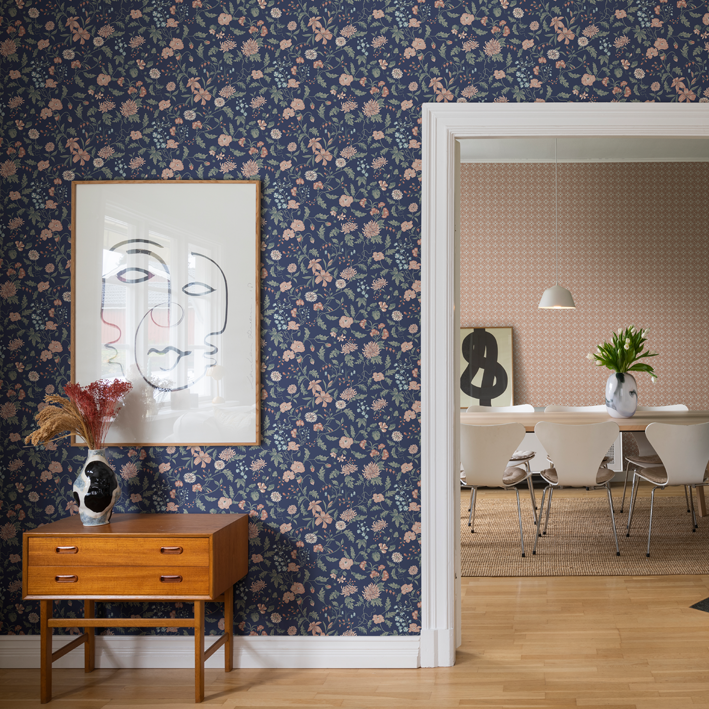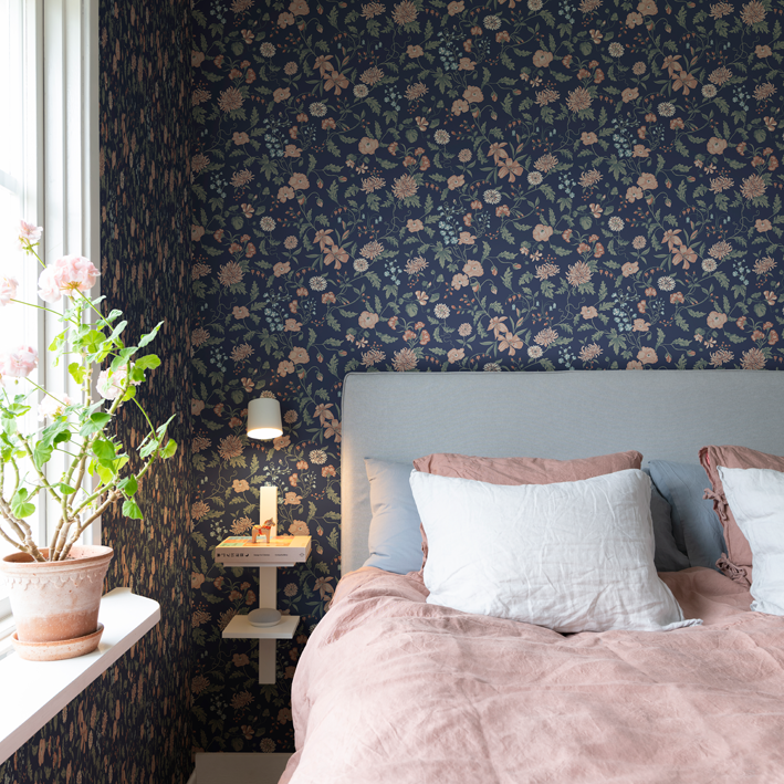 This design is part of the collection inspired by Carl and Karin Larsson, an iconic and beloved Swedish design family active in the 19th century. The design duo still inspires the whole world with their artistry, their home and their way of living. This hand-painted design adds beauty to your home. This design gives you the possibility to create both intense coziness and an airy feeling to a bedroom. This delicate and decorative wallpaper gives a sense of enlarging a space and an airy feeling of being outdoors during the lovely Swedish summer. The creative couple Karin & Carl Larsson loved to surprise and show appreciation for each other through creative expressions. The wallpaper “Till Karin”, is a new chapter of the original wall painting located above Karin’s bedroom door in their inspiring home, Lilla Hyttnäs. This painting was a gift and a declaration of love to Karin from Carl Larsson in 1894 representing flowers from their beautiful garden. Carl and Karin Larsson often painted decorative murals directly on the walls also involving their four children in the process. The name of the wall mural is shared with their daughter Suzanne, who co-created a flowery border in her own room at their iconic home.