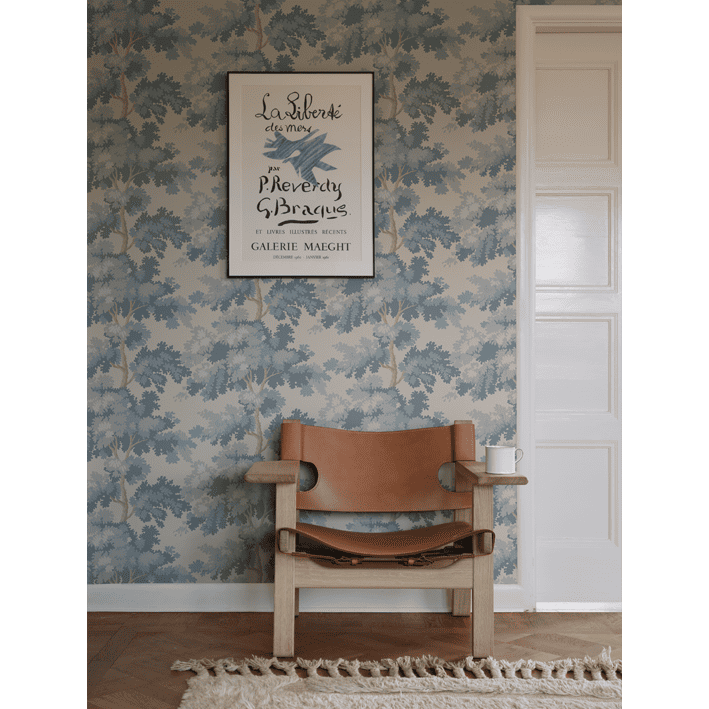 Raphael is one of our most popular wallpapers. The pattern gives you tree tops in a wide range of colour combinations. The inspiration for this pattern was partly taken from Central Park in New York - a leafy park surrounded by glass-and-concrete skyscrapers and a beautiful contrast to the bustling city. The pattern is also inspired by antique tapestries, where stylised leaves are often shown in fields of light and shade.