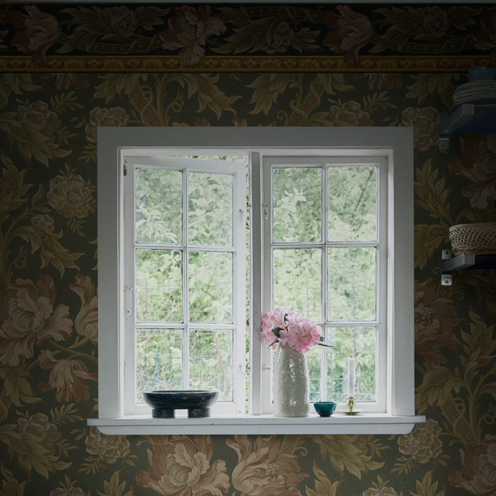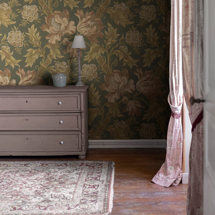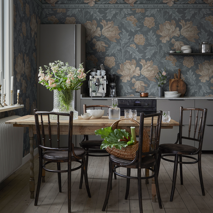 Esther was inspired by a hand painted original found in a Parisian archive. Reminiscent of old French homes, its complimentary border brings a touch of stately elegance to this feminine country-style floral. This Esther wallpaper has the colorway misty blue.