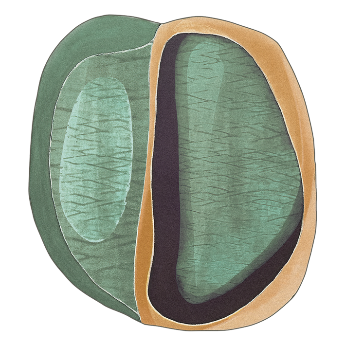 An exquisite collection of sophisticated free-form rugs, where circular and wavy patterns converge to create a design that feels both retro and modern. The interplay of these shapes exudes a timeless elegance, while subtle inspirations from nature—earth, water—are expressed through a gentle, surrealistic artform. Each rug balances classic style with contemporary flair, offering a refined yet distinctive aesthetic.