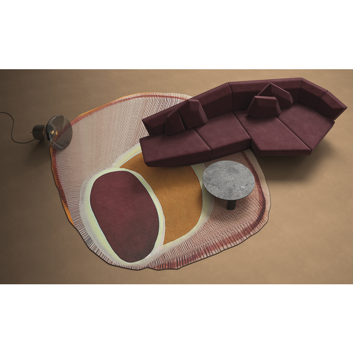 An exquisite collection of sophisticated free-form rugs, where circular and wavy patterns converge to create a design that feels both retro and modern. The interplay of these shapes exudes a timeless elegance, while subtle inspirations from nature—earth, water—are expressed through a gentle, surrealistic artform. Each rug balances classic style with contemporary flair, offering a refined yet distinctive aesthetic.